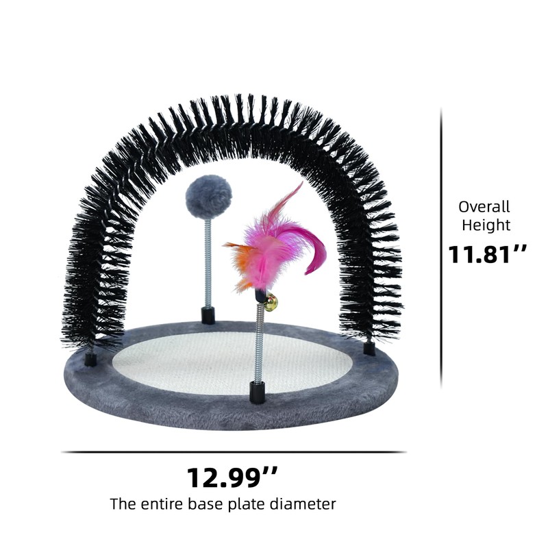 This multifunctional grey cat scratching pad combines durable sisal scratching surfaces with interactive feather toys and an ergonomic grooming brush. Its stable, weighted base and on-trend design provide a safe, stylish space for cats to scratch, play, groom, and relax, complementing your home decor effortlessly.