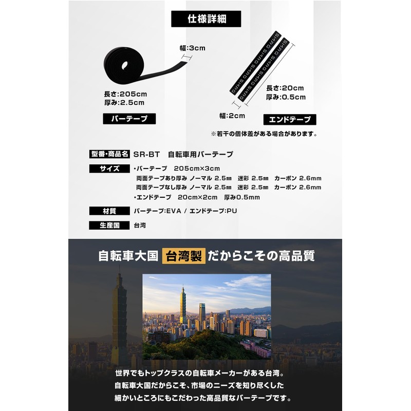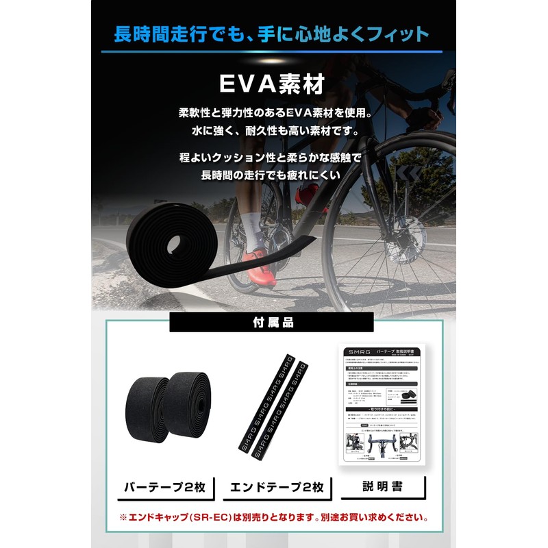 - Specifications and Details: Bicycle handlebar tape, road bikes, drop handlebars, EVA, fixed-gear bikes, SR-BT. Dimensions: Handlebar Tape: 6.7 feet x 1.2 inches/End Tape: 7.9 x 0.8 inches. *End plugs not included.Sold separately.
