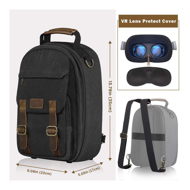 - 【Fashion protective shoulder case】Fashion Design VR Headset Case. Canvas surface, Hard and durable shell, soft and custom interior. A lens pad and strap are extra gifts for you. And it is waterproof, it can be carried for outdoor activities, such as running, cycling, hiking, camping, etc.