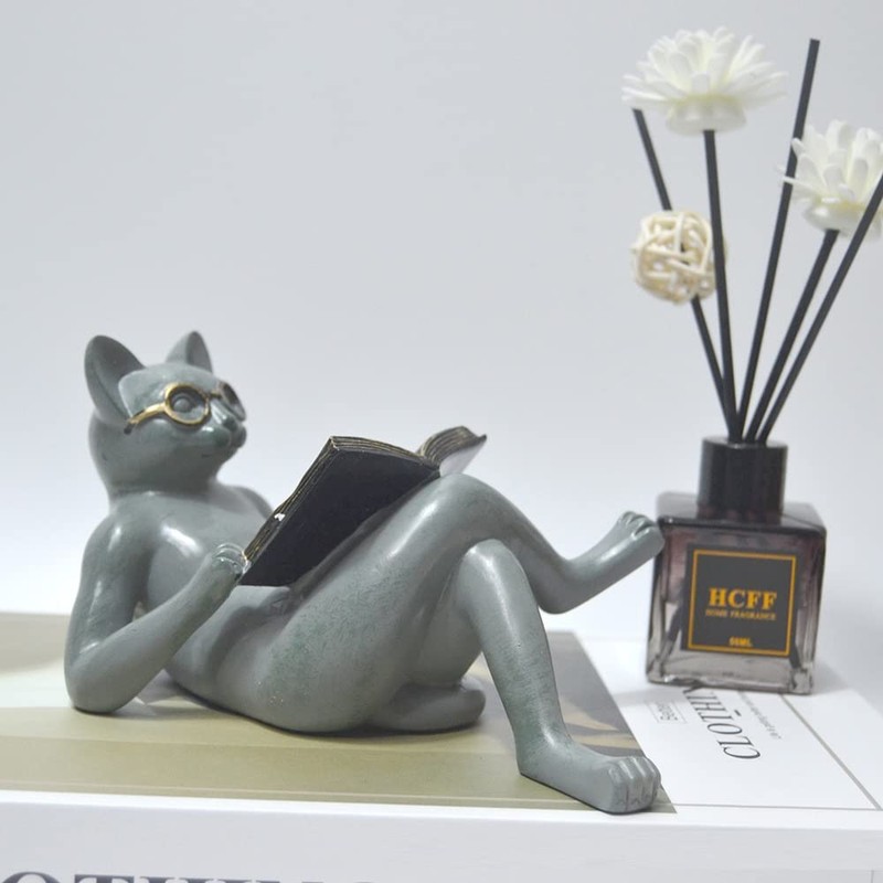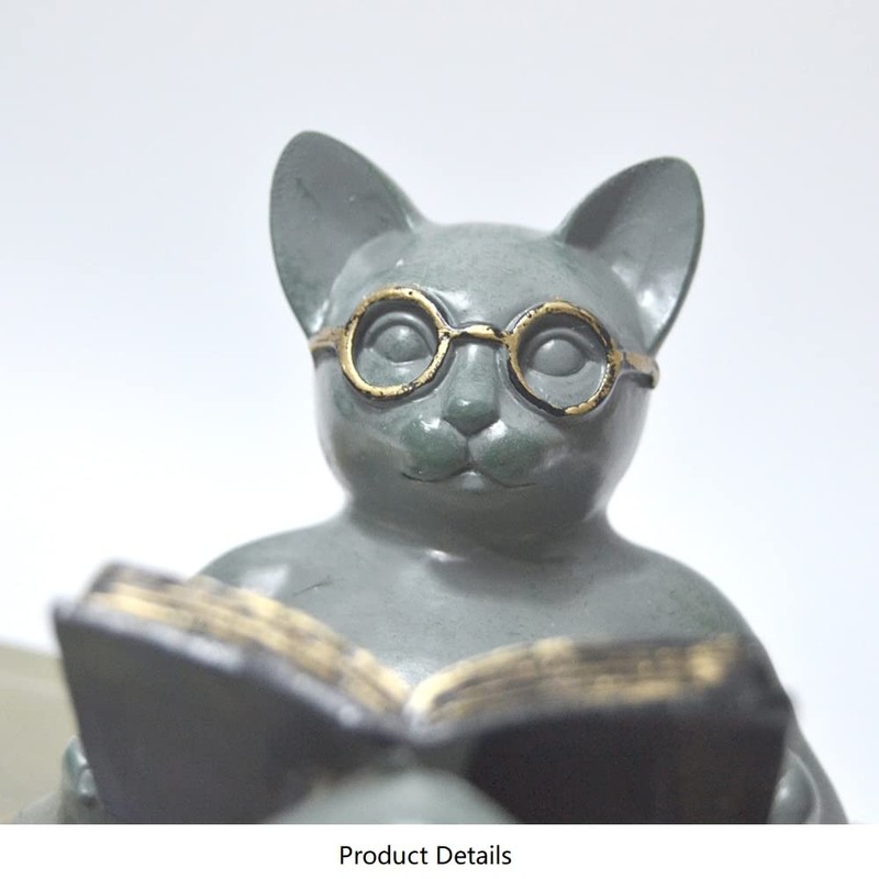 - Creative Design Idea,A Reading Cat with Glasses,who looks like a Professional.A Very Adorable Cat Figurine.