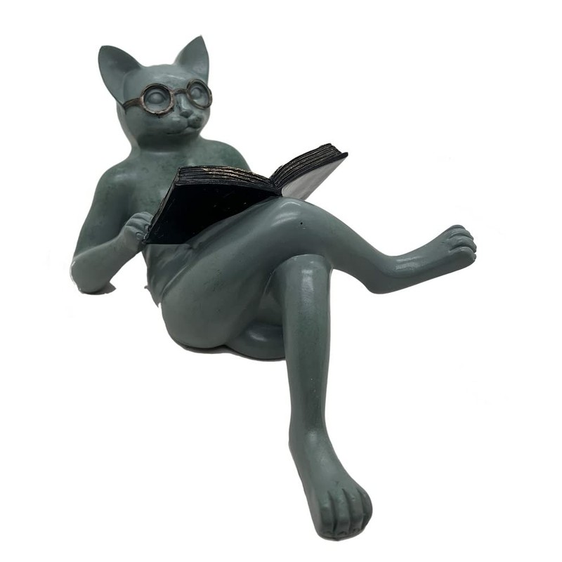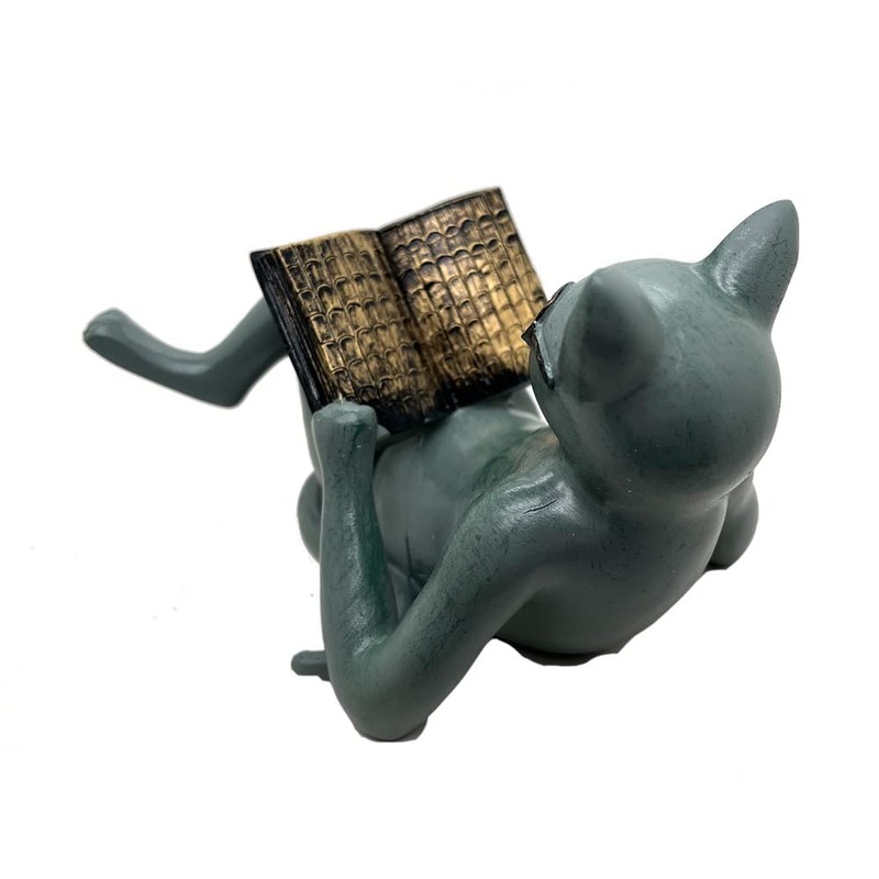 - Creative Home,Office or Garden Decorations,Resin Handicrafts-Reading Cat Shape Figurine