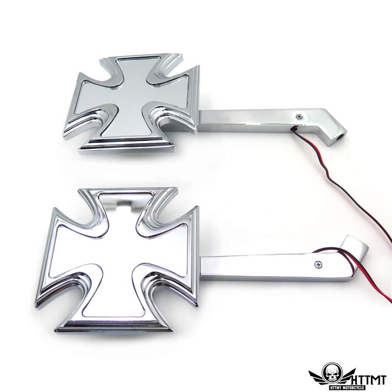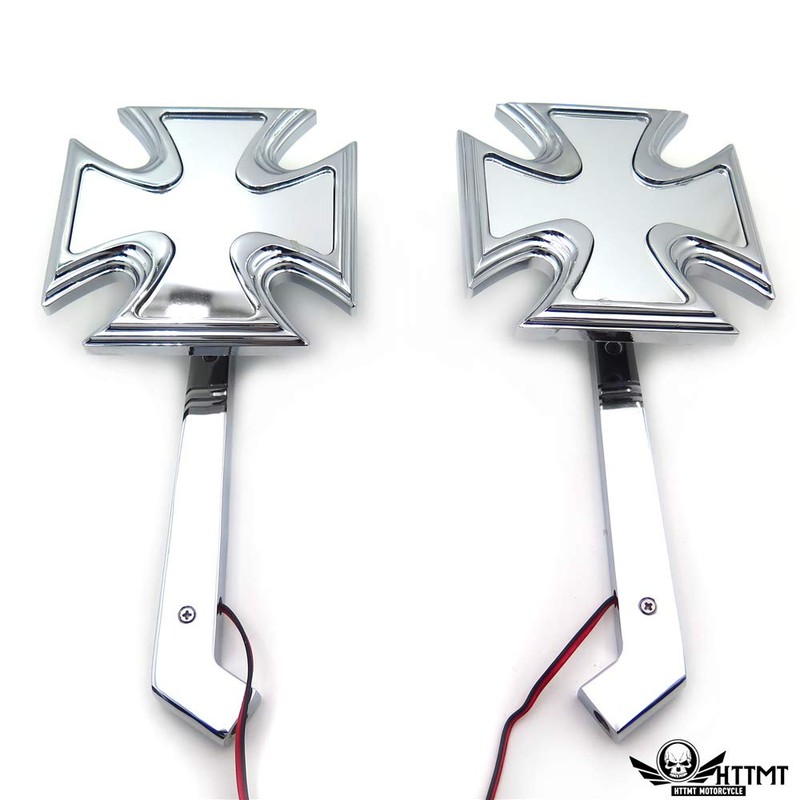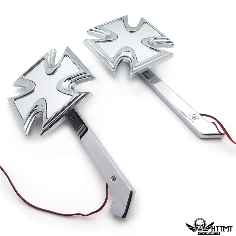 SMT- CHROME BILLET MIRRORS LED BLINKERS TURN SIGNALS MALTESE CROSS SET Compatible with HARLEY