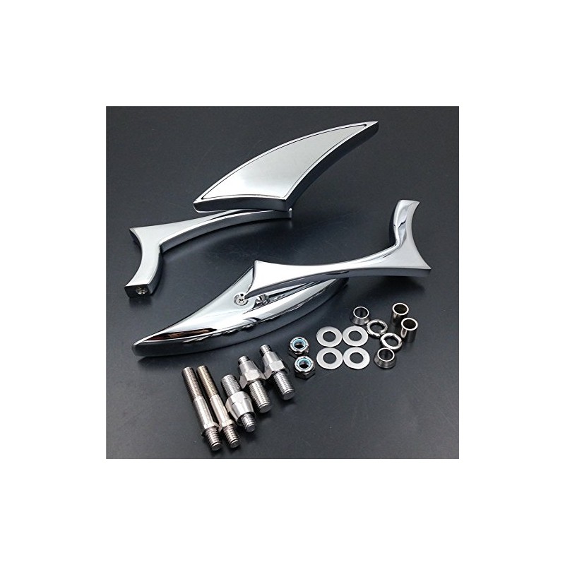 - Adjustable angle design,Color: the same like pictures show,Mirror size : 5-1/4" x 1-5/8" (15cm x 5cm),Stem Length: Approx 5-1/5",Comes in a pair (Left & Right),Includes 10mm Clockwise Bolts x 2; 8mm Clockwise Bolts x 2; 8mm Counter-Clockwise Bolts x 1,Easy install,No Installation Instruction