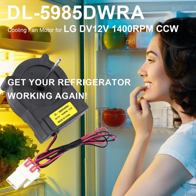 - 【Product Introduce】: DL-5985DWRA Cooling Fan Motor Compatible With LG Refrigerator DV12V 1400RPM CCW Fridge Radiator Freezer Parts