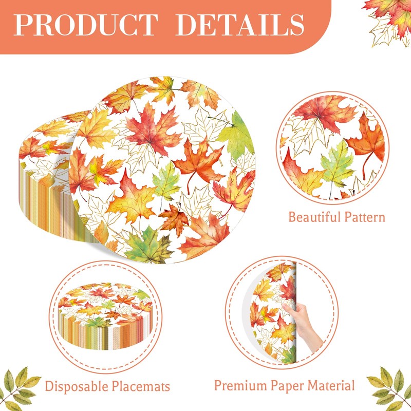 - 50 Pieces Quantity: 50 pieces of beautiful disposable placemats will elevate the atmosphere of every party! Each paper floral placemat is printed with a maple leaf pattern, instantly elevating your table decor