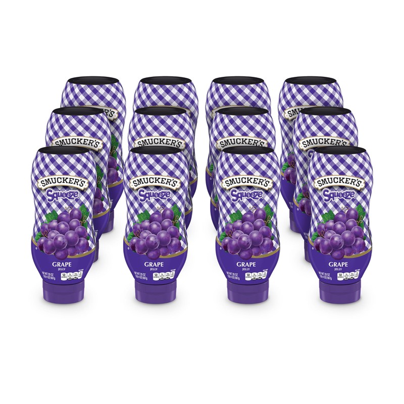 - Contains 12- 20 Ounce Bottles of Smucker's Squeeze Grape Jelly