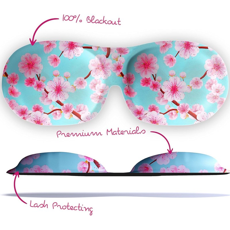 SMUG 100% Blackout Sleep & Eye Mask - Eyelash Extension Friendly - Eye Masks for Sleeping - Sleep Masks for Women & Men - Straps for Dream Comfort & Adjustability - Cherry Blossom 5-Pack