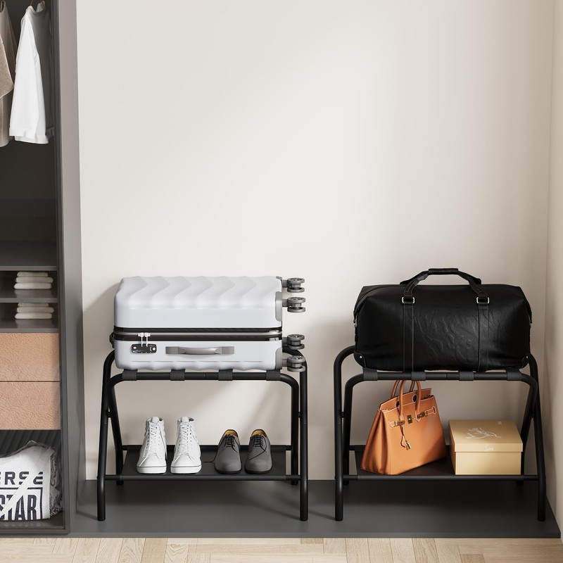 - 【Versatility】Luggage racks can be used to store different types of luggage, such as suitcases, bags, and clothes, making them ideal for long-term or temporary storage.