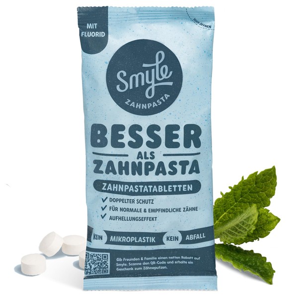 Smyle Toothpaste Tablets - Vegan, Fluoride Containing, Plastic-Free, Biodegradable Solid Toothpaste, (1 x 125 Pieces)