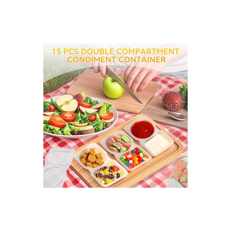 Snack Container, 15 Pcs Double compartment snack containers, Double Compartment Condiment Containers with Lids,Reusable Snack Container pare Outdoor