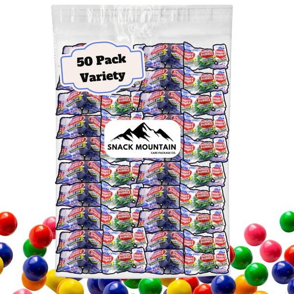 Snack Mountain Individually Wrapped Bubble Gumballs Variety Pack - 50 Count Fruity Gum Balls for Gumball Machine, Office Candy Jar - Bubble Gum Bulk, Gumballs Bulk with Assorted Flavors