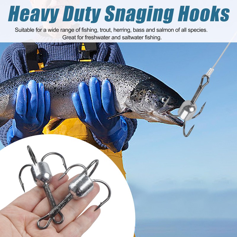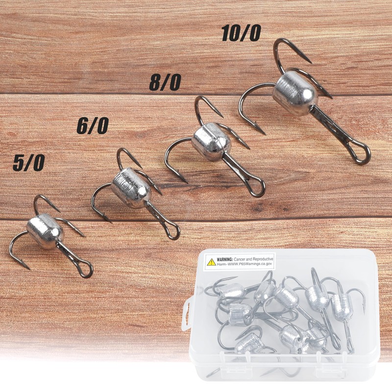 - 【4 SIZES AVAILABLE】Large snagging weighted hooks 5/0-1oz, 6/0-1.25oz, 8/0-1.5oz, 10/0-2.5oz. You will get 5pieces heavy snagging treble hooks in a box for easy carrying