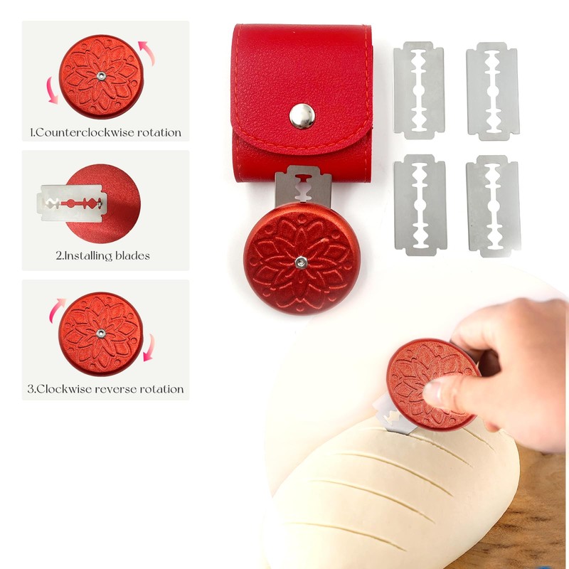 - 【Unique Bread Lame&5Blades&Leather Pouch】Made of aluminum alloy material,our dough scoring knife is sturdy and durable, which dedicated to cutting food.Due to patterned design, you will feel a comfortable grip and not easy to slip your hands. After use, the blade can be retracted to the disc and stored into leather bag, which is convenient and compact, clean and beautiful.It's the best partner for bread basket proofing.