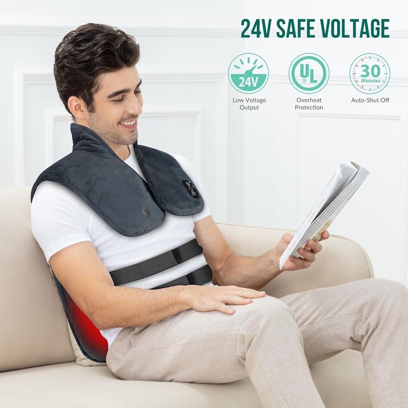 - 【SOFT & SMOOTH VELVET FABRIC】This large heating pad uses soft and smooth velvet fabric to wrap around your entire upper body for close touch in a comfortable way. A PERFECT GIFT for Mothers day, Fathers day or birthday gift Christmas gift for your loved ones.