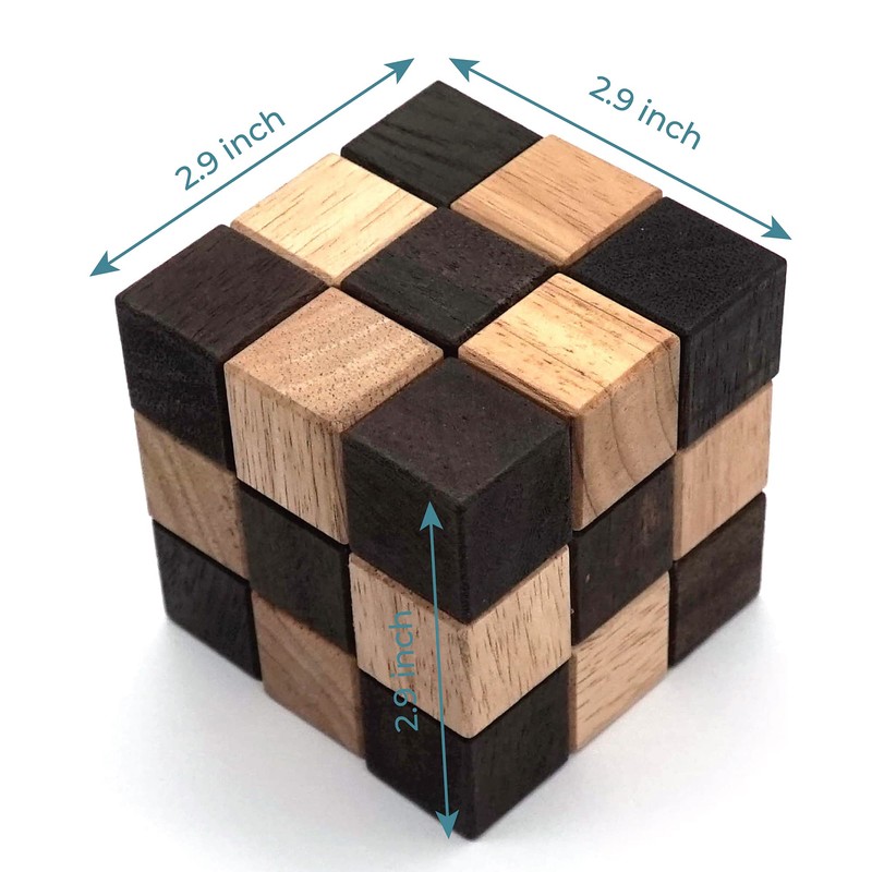 - BRAIN GAMES TEASERS 3D SNAKE PUZZLE CUBE (SIZE M of 6x6x6 CM)- Keep your family busy with these 3d puzzle brain games for adults and kids of snake interlocking cubes. Brain puzzles for adults is made with wooden 27 cubes and connected by an elastic string that you must arrange the snake puzzle chain to be in the square of the rubiks cube 3x3x3.