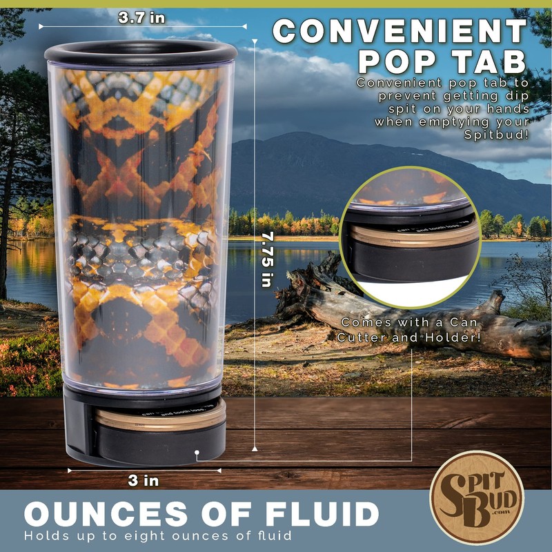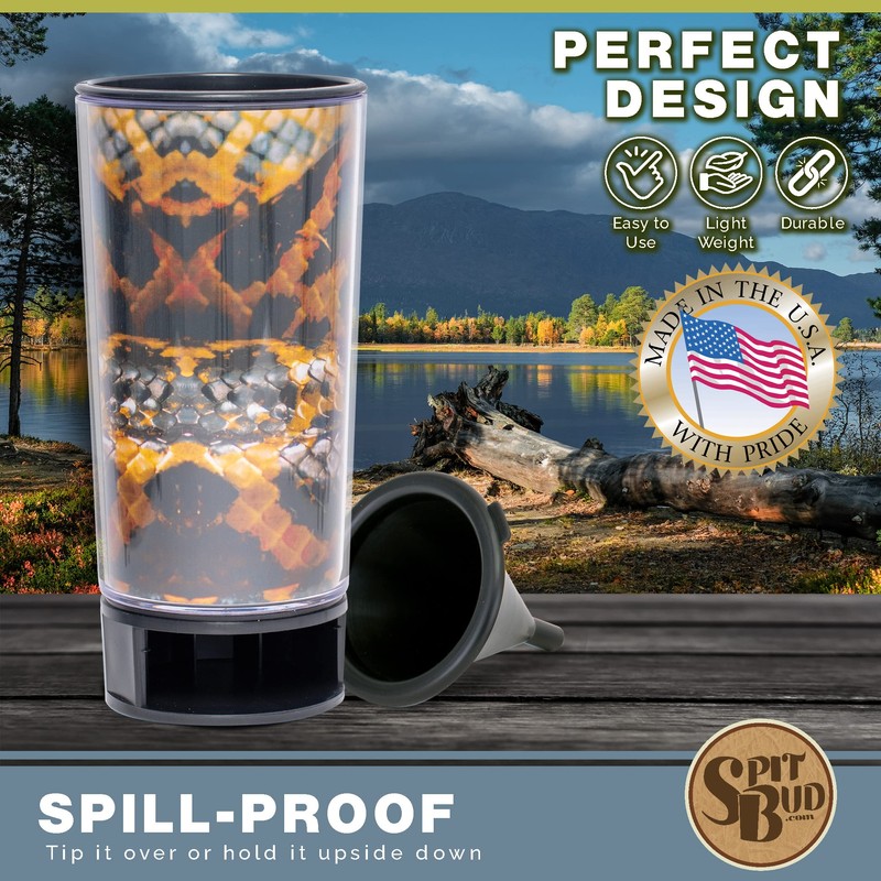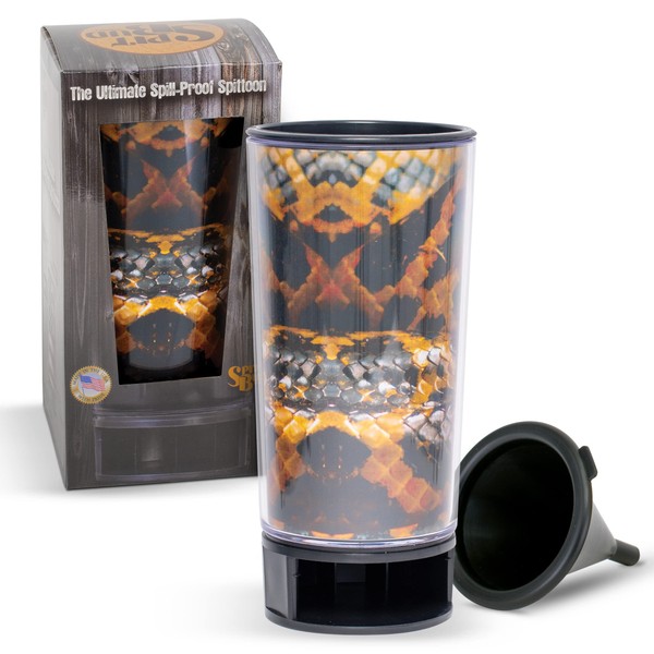 Snake Skin #2 by Spit Bud - The Ultimate Spittoon for Chew - Portable Dip & Snuff Cup with Lid, Pop Tab, Spill-Proof Funnel, Can Cutter & Holder - Fit in Cup Holders - Holds 8oz - Made in USA