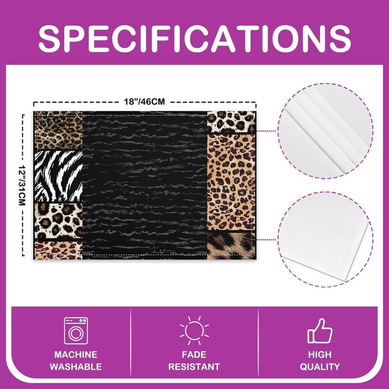 Snake Skin Placemats Leopard Zebra African Wildlife Print Place Mats for Teens Men Adults Women Animal Grid Patchwork Rustic Style Kitchen Mats for Dining Table 12x18 Inch Set of 4