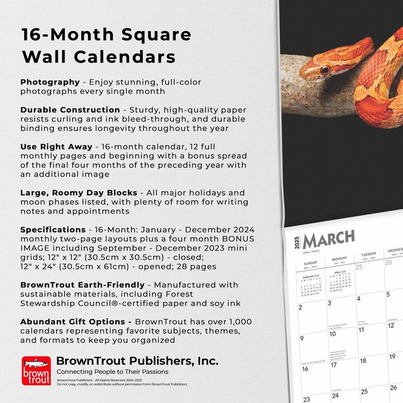 Snakes | 2025 12 x 24 Inch Monthly Square Wall Calendar | BrownTrout | Animals Nature Wildlife