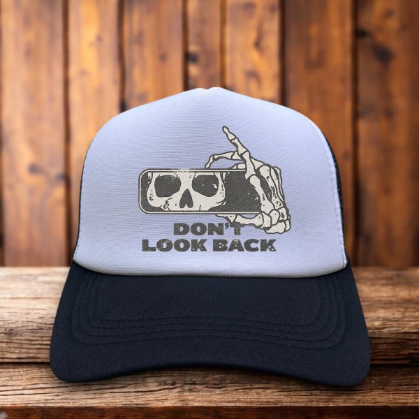 Snap-Back Don't Look Back Skeleton Unisex Trucker Hat Black Snapback Spooky Ball Cap