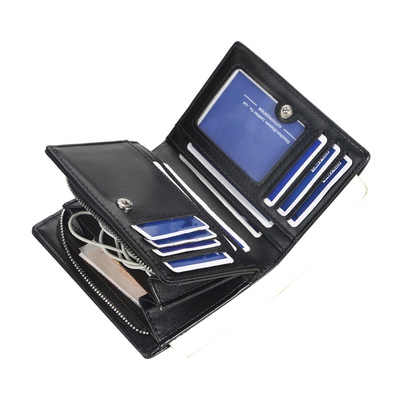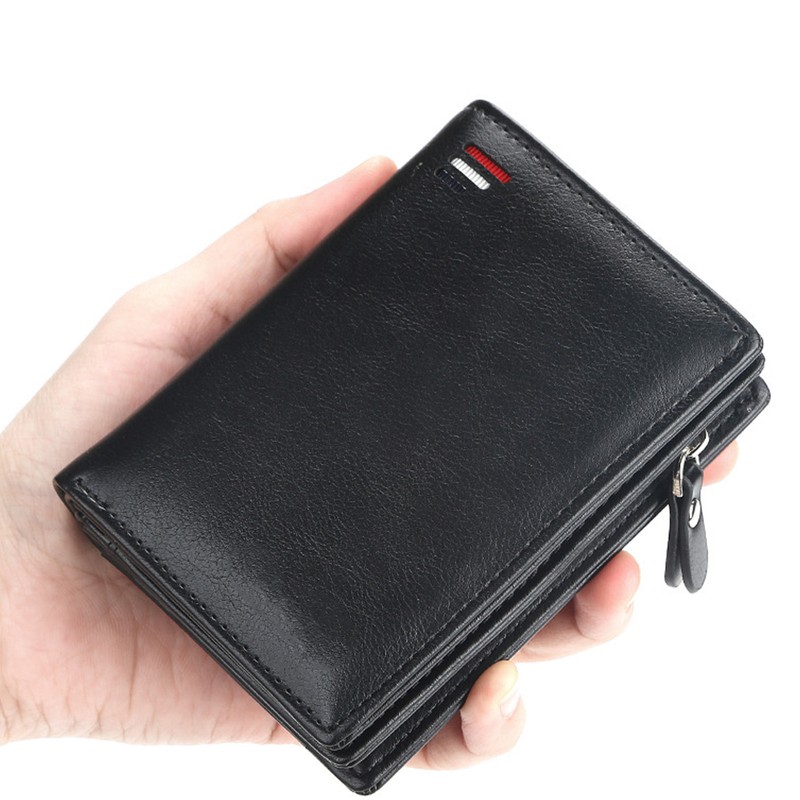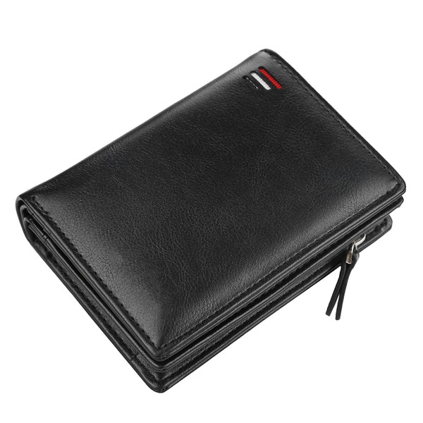 Snap Coin Purse Short PU Leather Multi Card Position Zippered Men's Wallet for Daily Black