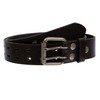 Snap On Double Prong Two Row Cut-out Holes Perforated Full Grain Leather Jean Belt, Black | M-34"