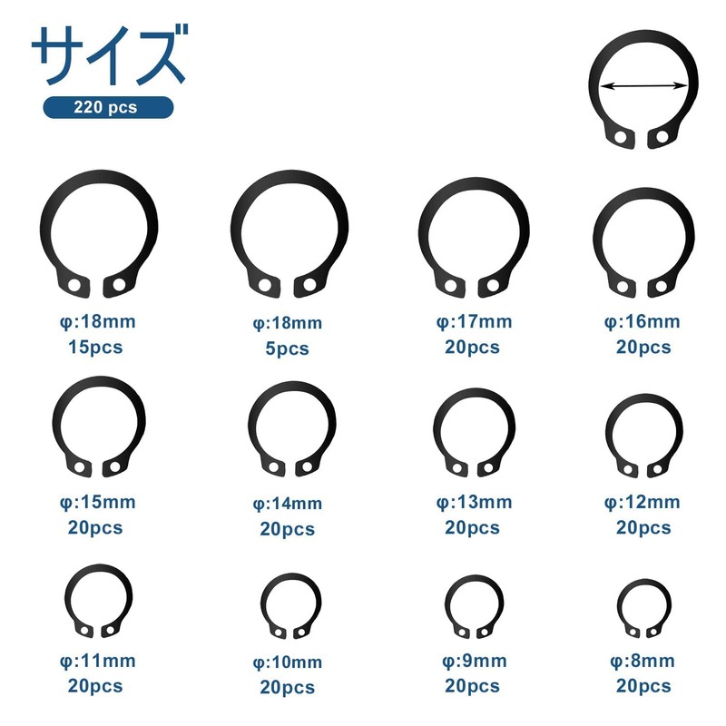 • 220 pieces in total of 11 sizes C clips, 8mm, 9mm, 10mm, 11mm, 12mm, 13mm, 14mm, 15mm, 16mm, 17mm, 18mm to meet your diverse needs