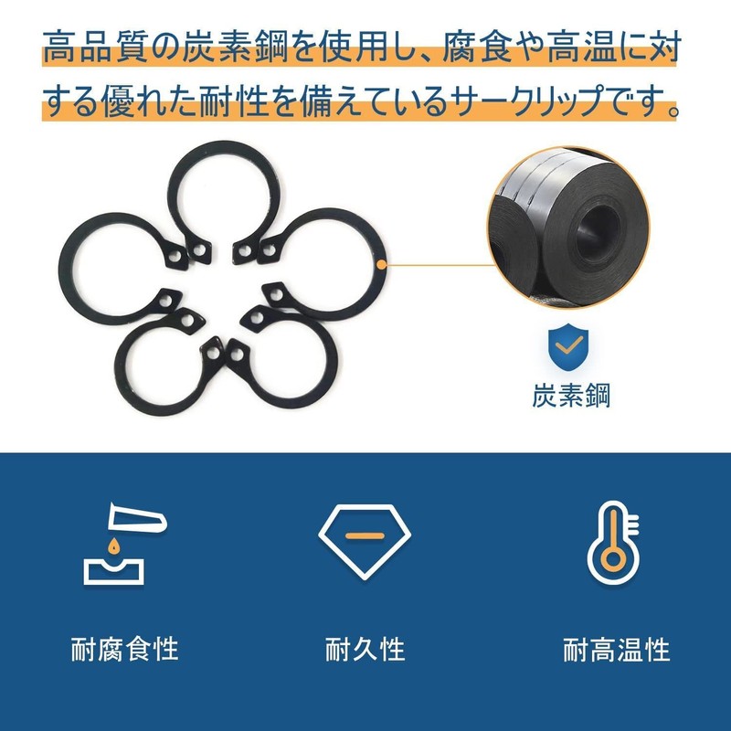 • This axis snap ring is made of high quality carbon steel and has excellent resistance to corrosion and high temperature and can be used for a long time