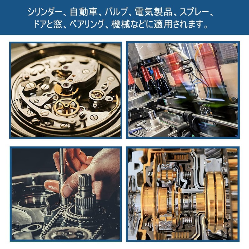 • Applies to cylinders, automobiles, valves, electrical appliances, sprayers, doors and windows, bearings, machinery, etc. Suitable for indoor and outdoor use. Easy to install