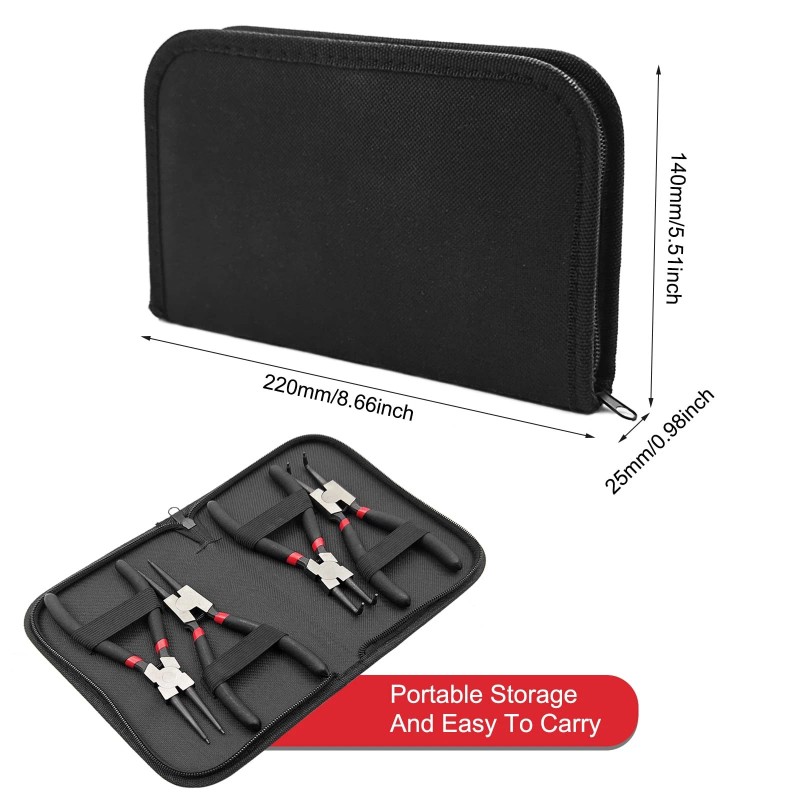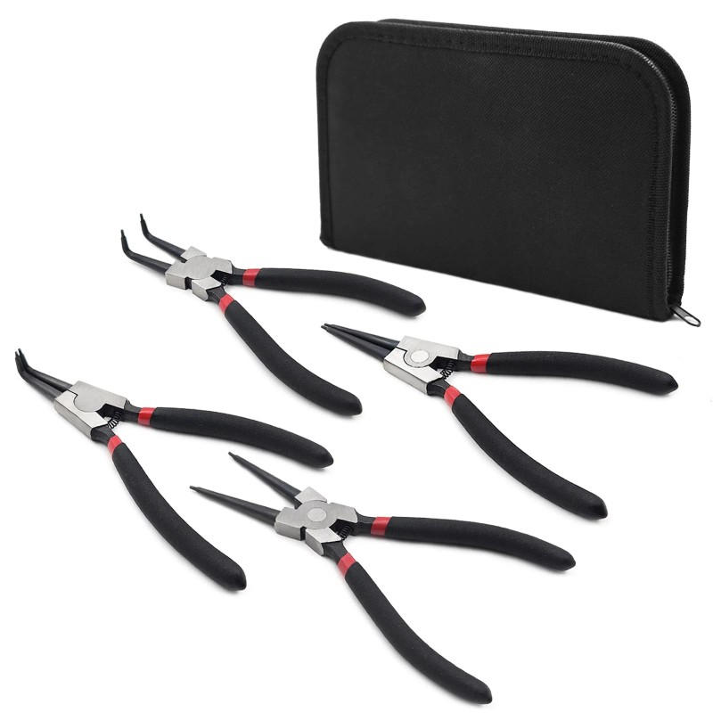 • 【Package Include】- 4 Pcs 7'' clip pliers with 1 storage bag(1 x Straight Internal Pliers, 1 x Bent Internal Pliers, 1 x Straight External Pliers 1 x Bent External Pliers). It is convenient for better storage and carrying.