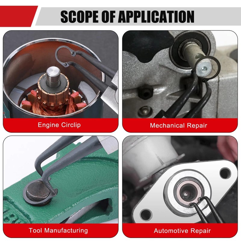 • 【Multi-Application】- These ring pliers are widely used in fixed bearings or bore bearings in the machinery industry, machinery maintenance, bicycles, motorcycles, plumbing and agricultural machinery industries.