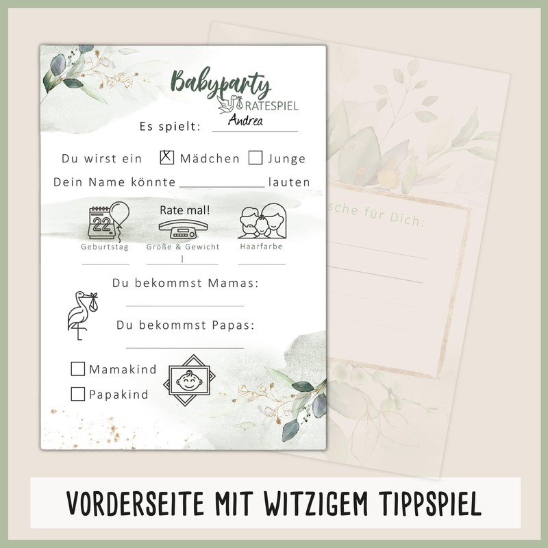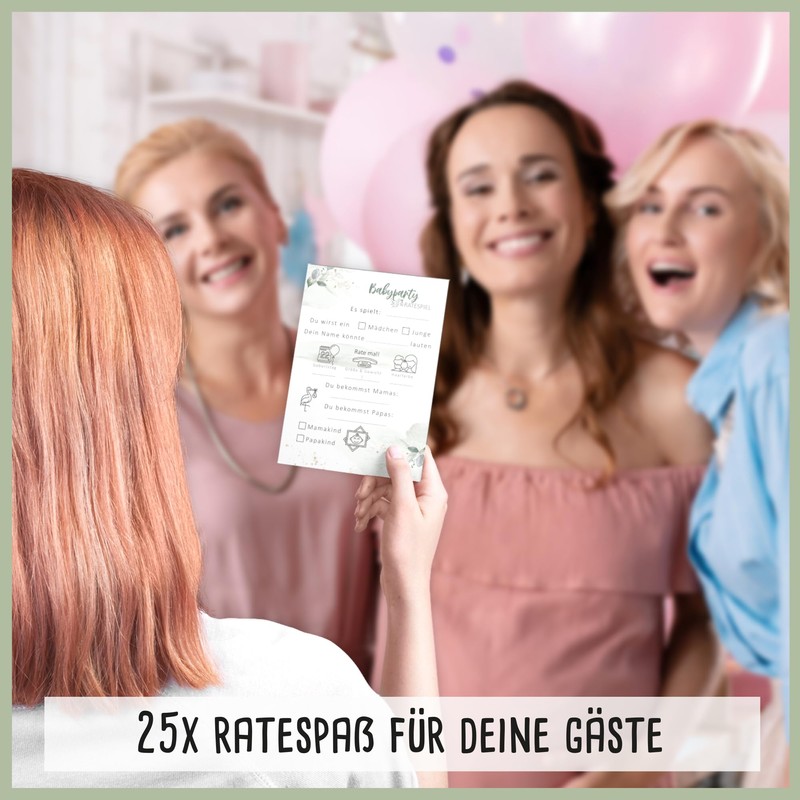 - Laugh together: party game for up to 25 players. Boys can also guess. The cards can be glued into a guest book. Simply celebrate more beautifully!
