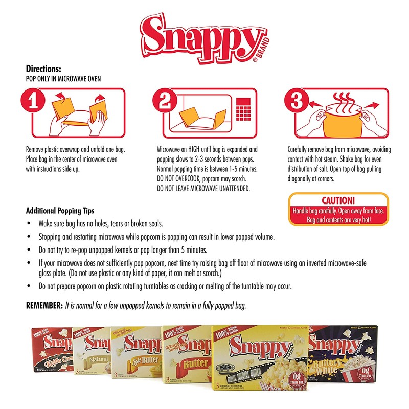 Snappy Butter Microwave Popcorn, 3.5 oz, 48 Pack