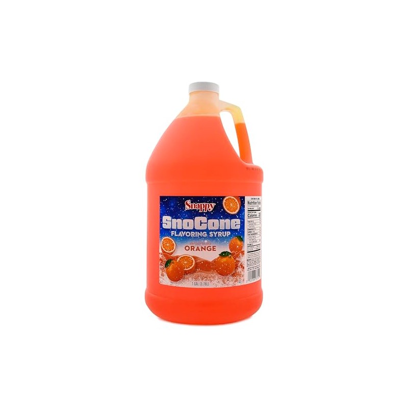 Snappy Orange Sno Cone Syrup, 1 Gallon (128 ounces) Size, Ready to Use For Snow Cone Machines, Flavored Syrup for Shaved Ice, 14 Snow Cone Flavor Options