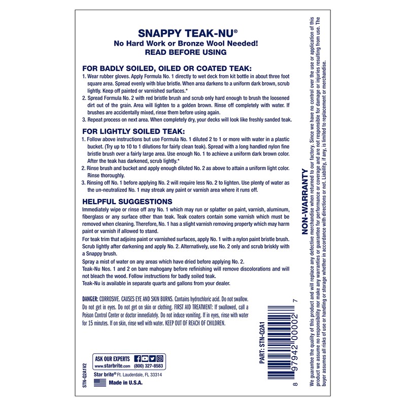 - An easy to use two-part teak cleaner and restorer kit that eliminates the need for sanding or hard scrubbing