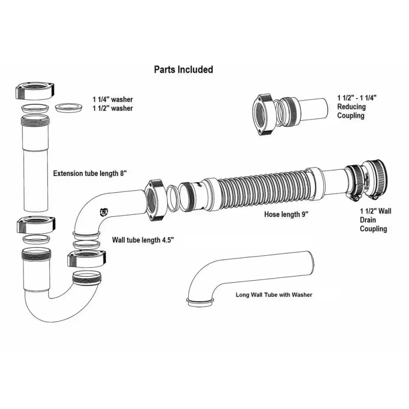 - Optional use of longer wall tube instead of flexible hose for centered wall drain pipes