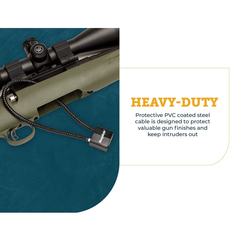 - Sturdy Construction - the protective PVC coating hardened steel cable is designed to protect valuable gun finishes and keep intruders out. Includes 4 keys