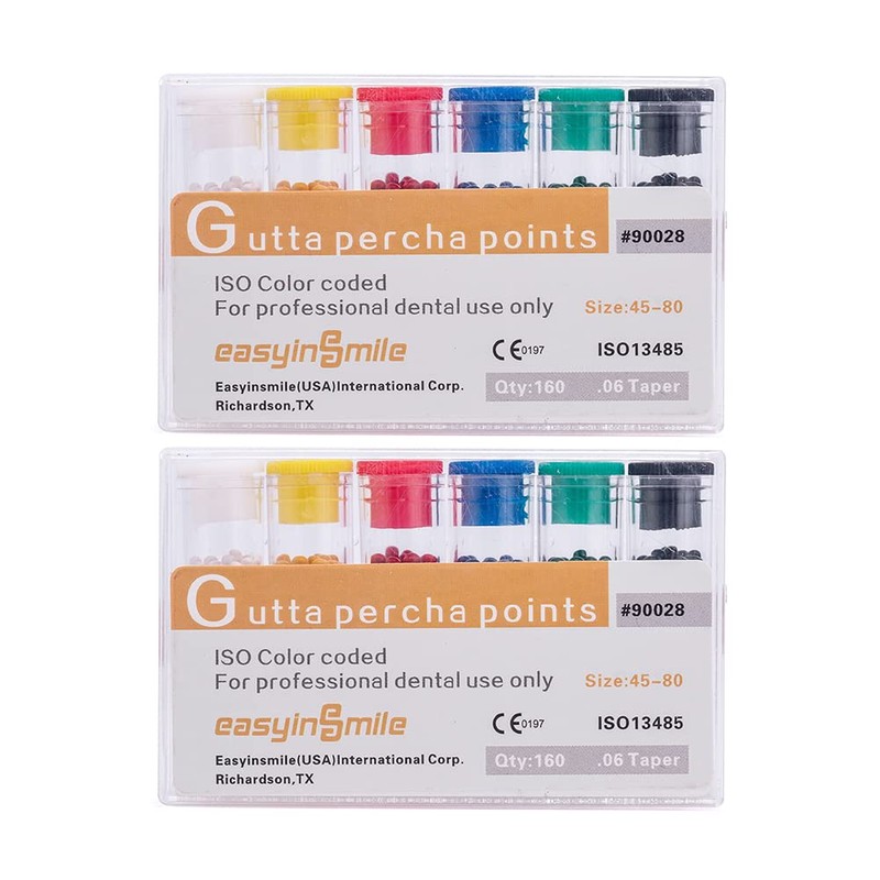 Features:Dental Gutta Percha Points suitable for both warm and cold obturations.The high-quality level of our gutta-percha points offers you the precision required for optimal obturation results.Reliable insertion down to the apex.According to the ISO standard, different types of gutta-percha points are identified according to the color of the top.Available in: .02 taper/.04 taper/.06 taper#15/#20/#25/#30/#15-40/#45-80Packing Include: 2 Packs.02 taper 120pcs each pack.04 taper 60pcs each pack.06 taper 60pcs each pack