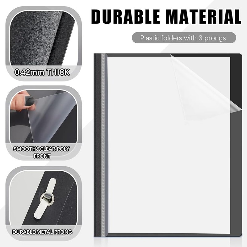 Snblzhef 10 Pack Report Covers with 3 Prongs Fasteners,Presentation Folders, Plastic Report Folder with Black Back Covers