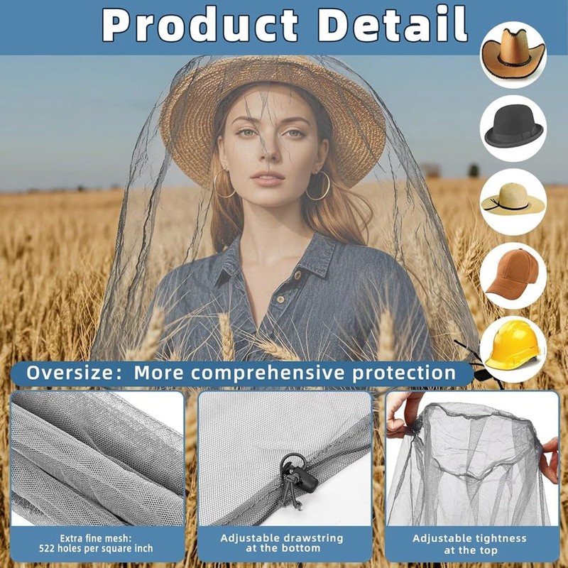- Superior Protection for Outdoor Adventures:Our mosquito head net is designed to provide comprehensive protection during outdoor activities. It effectively keeps mosquitoes, black flies, and other bugs away from your face, neck, head, ears, and eyes. It's an essential accessory for all outdoor enthusiasts.