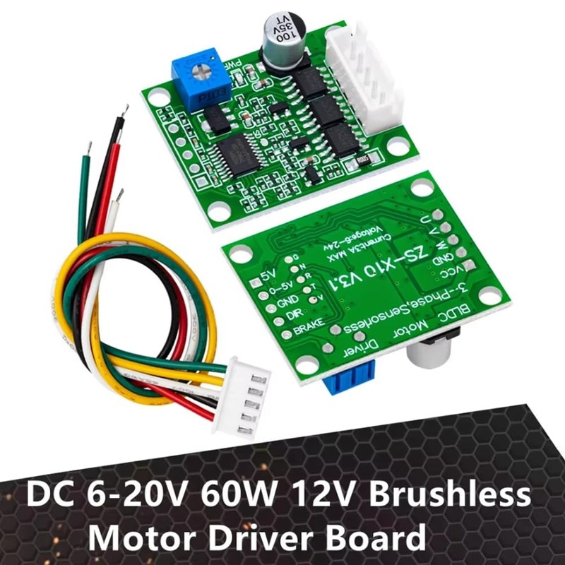 Snblzhef Brushless Motor Speed Controller DC 6-20V 60W 12V, BLDC 3-Phase Governor Hallless with Cable