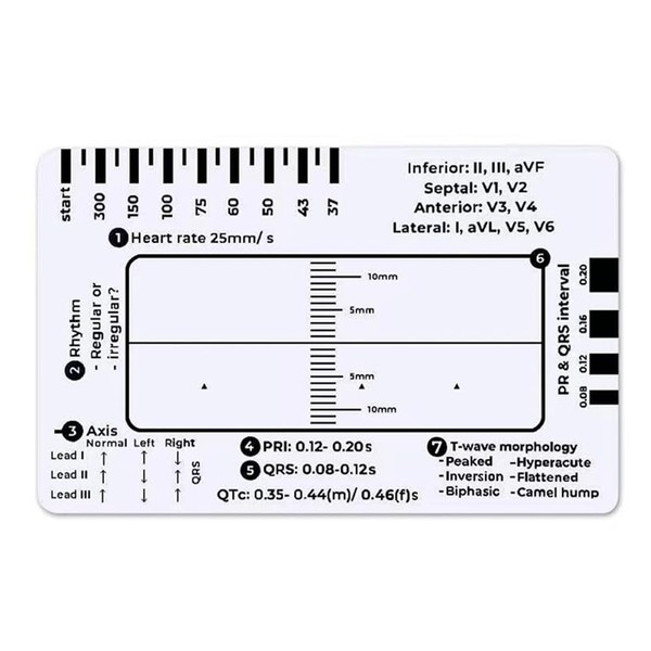 - ECG 7 Step Ruler: A transparent ID sized card making ECG interpretation easy. Suitable for anyone undertaking ECG/ EKG practise from a student up to an experienced clinician