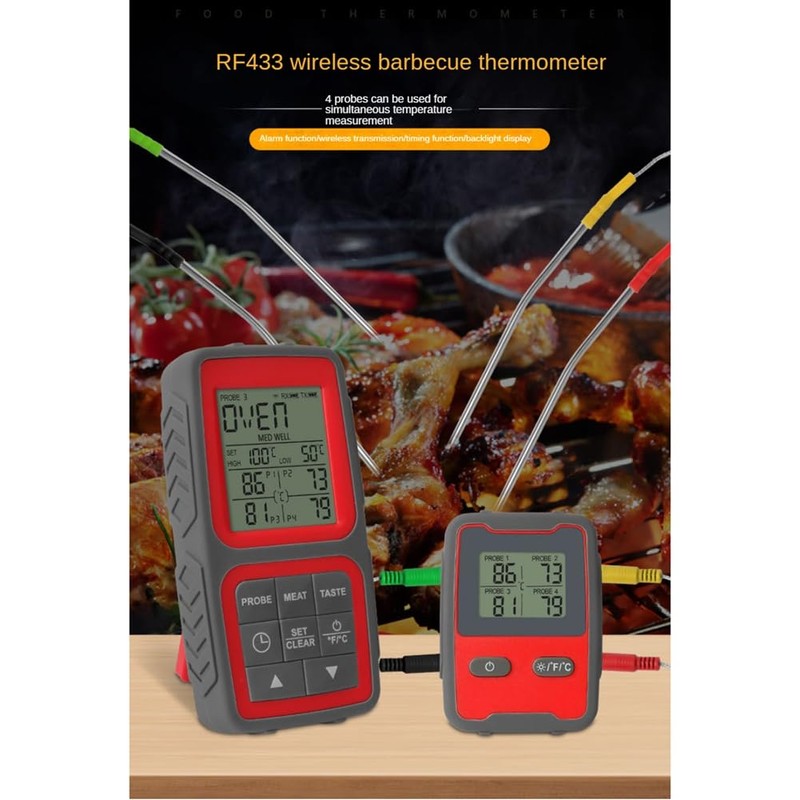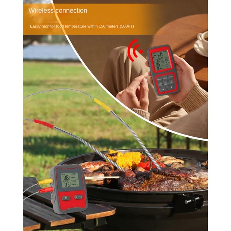 - [500ft Stable Signal Connection & Hands Free Monitor]Meat thermometer digital wireless features professional and stable remote RF433 signals, which can monitor up to 500 feet of distance in the open area. You don't have to stay in the kitchen or next to the grill/oven/smoker the whole time. During the cooking process, you can do your own things and spend time with family and guests.