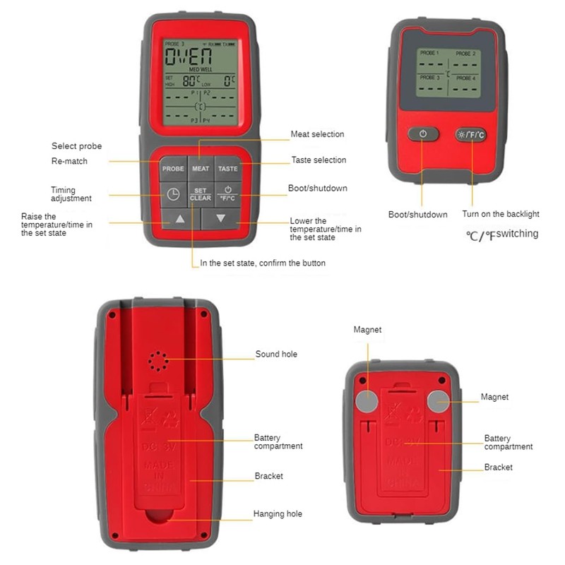 - [ Feature - Construction & User-friendly Interface]The wireless adopt TPE and plastic integral forming technology - anti-skid and more . some other BBQ Thermometer wrapped with rubber sleeve.