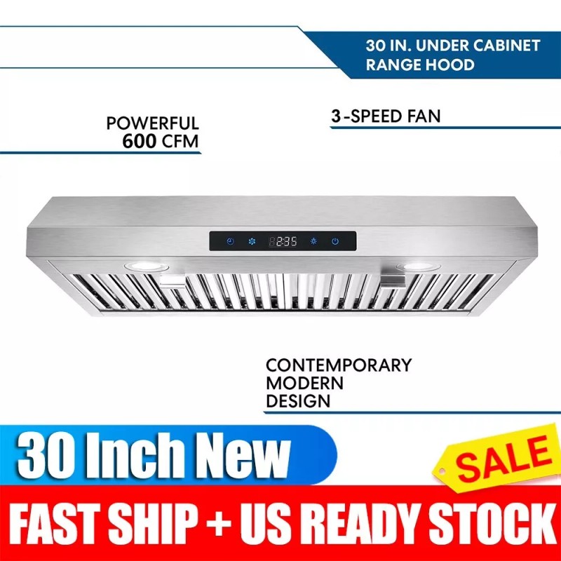SNDOAS 30 inch Under Cabinet Range Hood 3-Speed Touch Control 600CFM Vent LEDs
