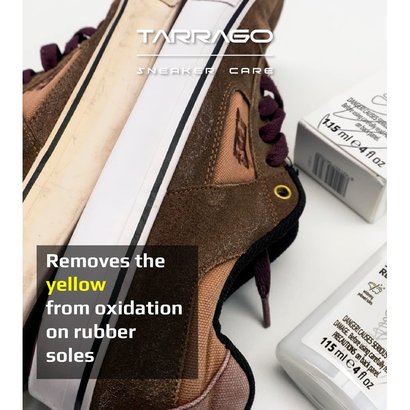 The restorer counteracts yellowing of the sole material and can largely remove discolouration. The cleaner is only suitable for white and transparent materials. Gloves should be worn when using. The Sole Restorer trainers nevertheless and in any case meet the applicable legal guidelines in terms of health and environmental protection.