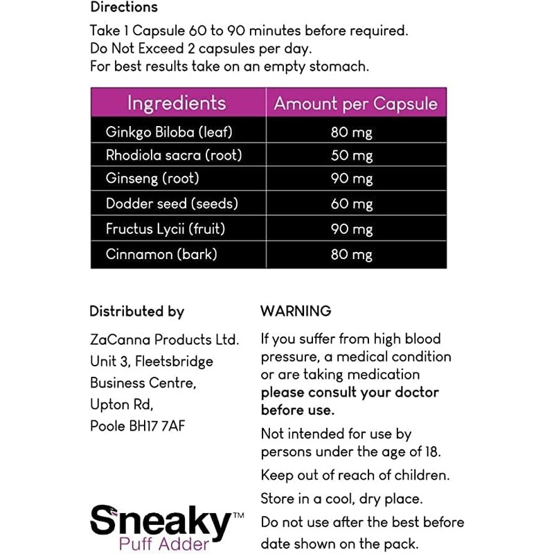 Sneaky Puff Adder Herbal Ginseng Complex for Men | 10 Capsules + 10ml Bottle ...