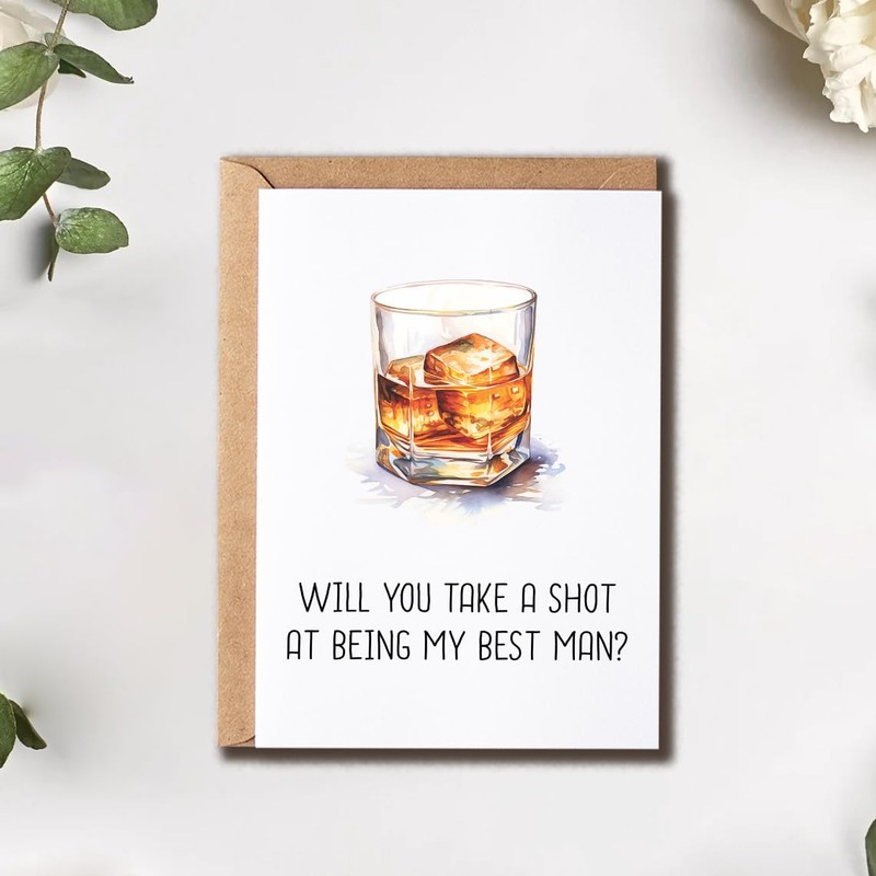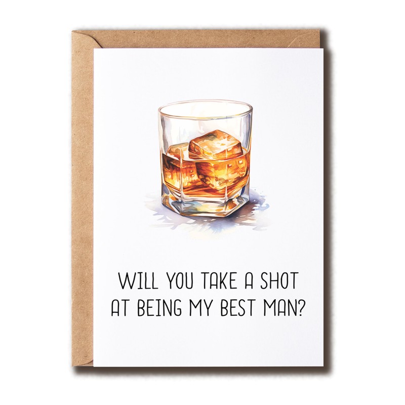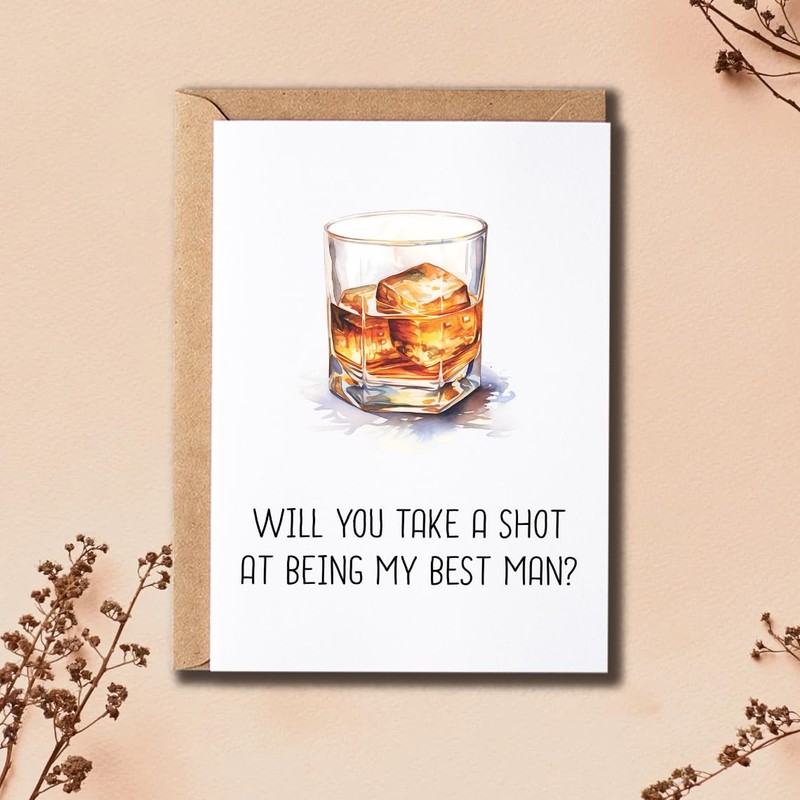 SNHDesign Will You Take A Shot At Being My Best Man Card - Wedding Card - Funny Groomsman Proposal Card - Wine Groomsman Card - Wine Card - Humor Card