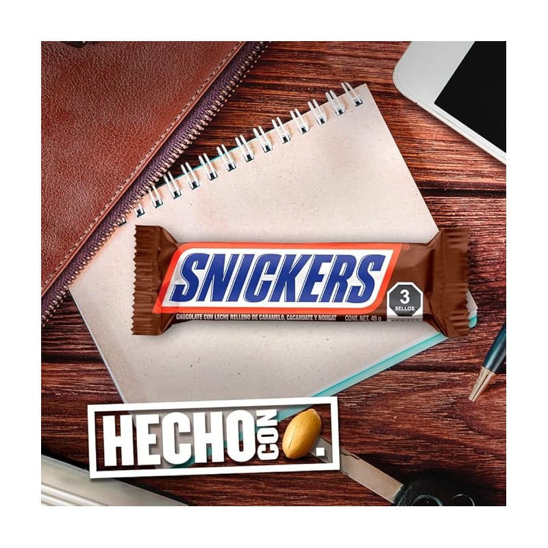 Porque no eres tu cuando tienes hambre, cómete un Snickers® y satisface tu hambre. Disfruta del exquisito sabor del chocolate con leche relleno de caramelo, cacahuate y nougat.
