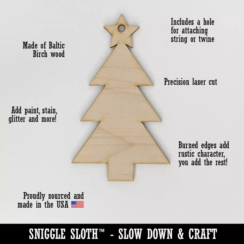 The materials for this craft ornament are sourced from top US companies and created in our Sniggle Sloth California facility to form a high-quality product you'll cherish for years. This is a natural product, so grain color and prominence will vary. Sold individually.
