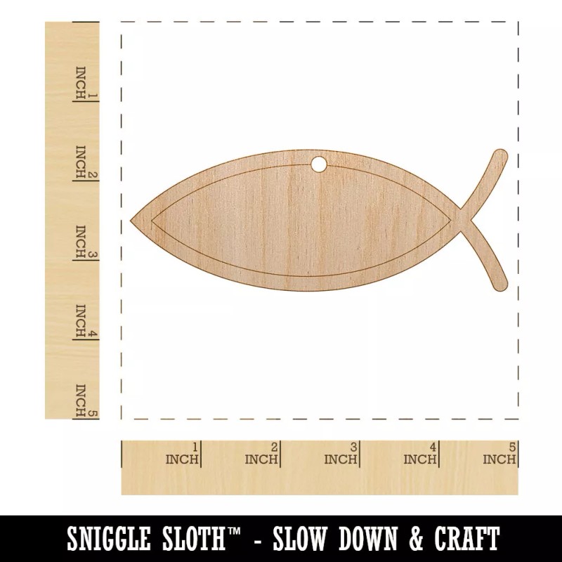 Sniggle Sloth Ichthys Fish Christian Unfinished Craft Wood Holiday Christmas Tree DIY Ornament